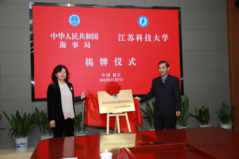 嵇春艳副校长与邓少彪副处长共同为“注册验船师发展研究中心”揭牌。