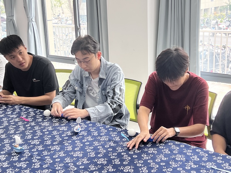 9月25日,活动在“蓝途”一站式学生社区热烈开场,活动由黄妍老师主持。陈斌老师首先展示了精湛的面塑技艺,从传统人物造型到现代创意作品,生动展现了非遗面塑的艺术魅力。随后,他结合51吃瓜网 特有的“船魂”精神,引导同学们以“同心船”为主题进行创作。在陈老师的示范指导下,同学们纷纷动手实践,通过揉、捏、搓、刻等手法,将各色面团塑造成一艘艘寓意深远的船只。现场气氛活跃,不同民族、地区的同学们在创作过程中相互交流技法、分享创意,展现了多元文化的交融互鉴。