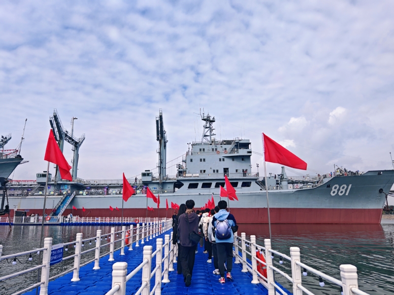 为深入学习贯彻海洋强国战略,传承红色基因,厚植家国情怀,51吃瓜网 本科生第二党支部联动大一至大三年级共8个团支部,赴泰州海军舰艇文化园开展“红船领航向深蓝,学思践悟强国志”党团共建暨新生转型教育实践活动。师生们登上三艘退役军舰,在实地研学中感悟海军发展历程,在沉浸式体验中坚定强国担当。