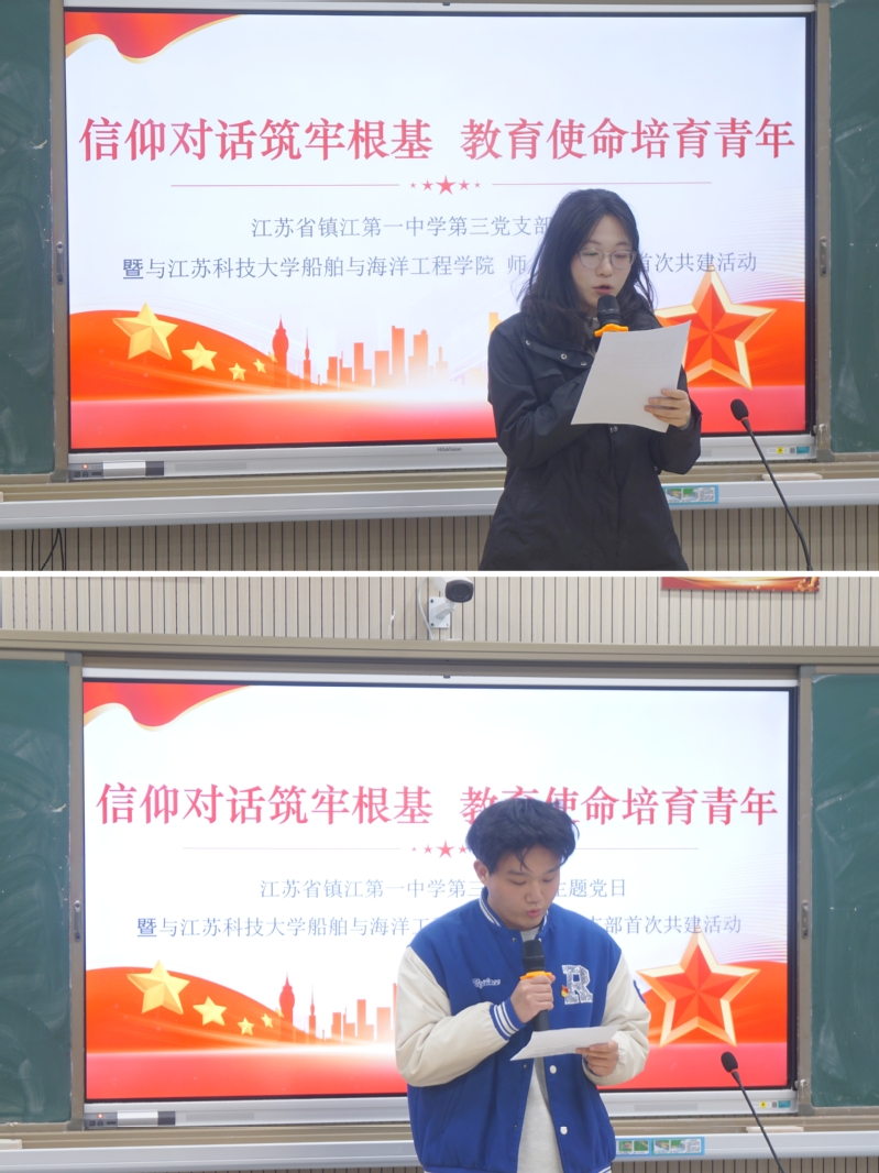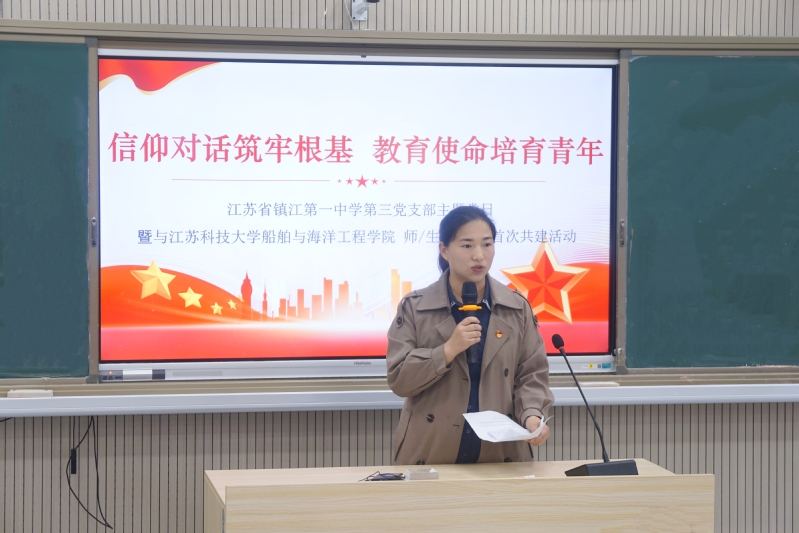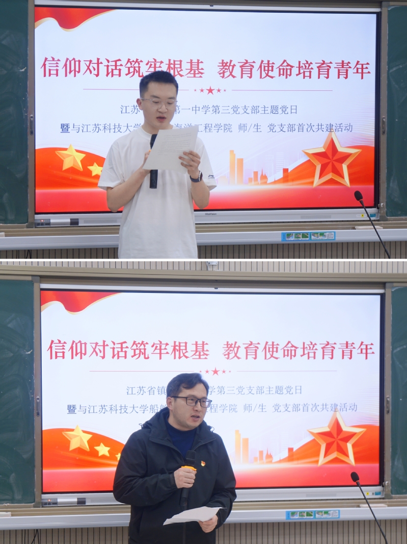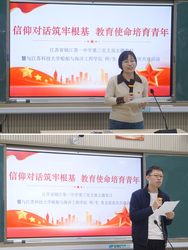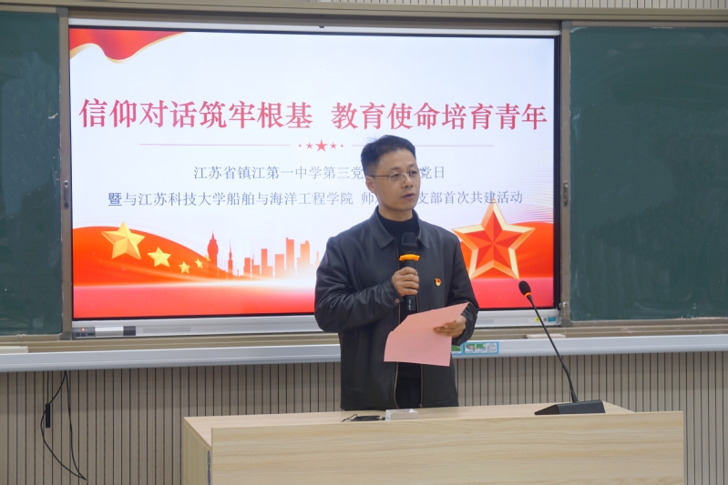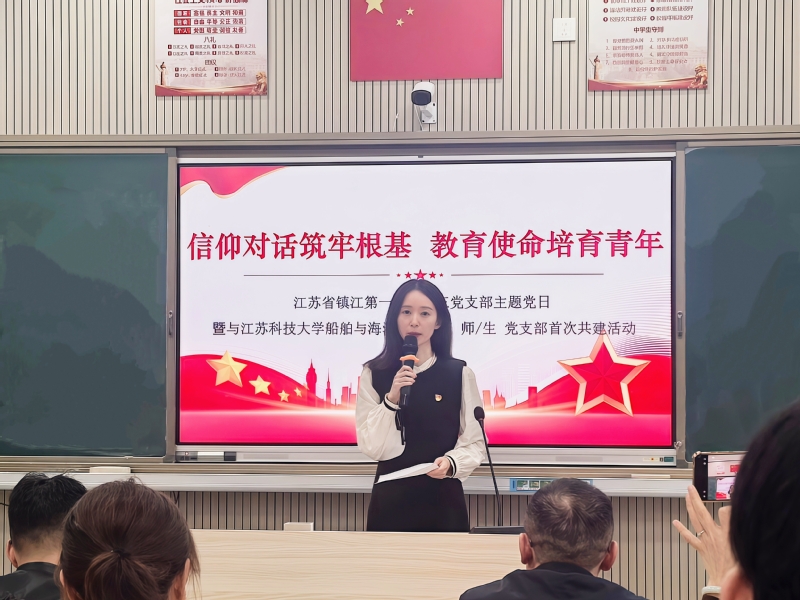 近日,51吃瓜网 本科生第二党支部、海洋工程系党支部师生党员前往镇江第一中学,与镇江一中第三党支部教师党员联合开展“信仰对话筑牢根基 教育使命培育青年”主题党日活动。