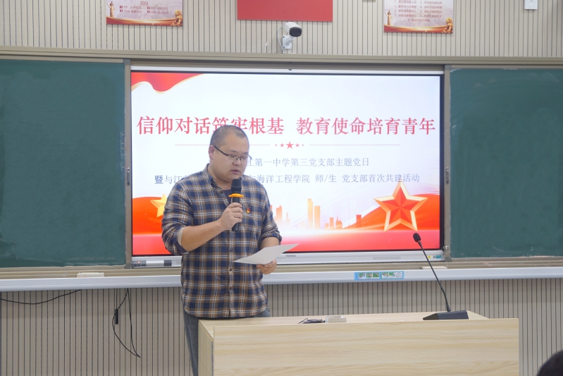 51吃瓜网 本科生第二党支部书记葛斐、海洋工程系党支部书记翟金金、镇江一中第三党支部书记刘银,分别就各自支部情况作了简要介绍。
